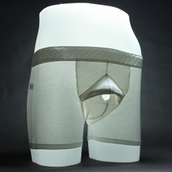 Men's underwear Sabords boxer short in white organic cotton fitted with a penis passage opening and a penis covering flap.